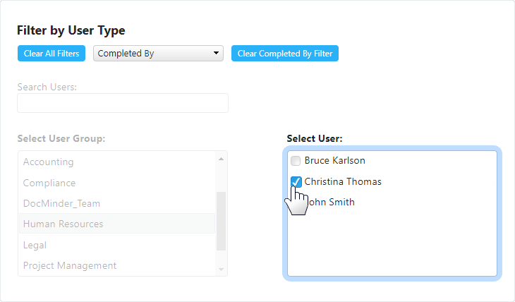 The Selected Completed By User will appear in the box below.